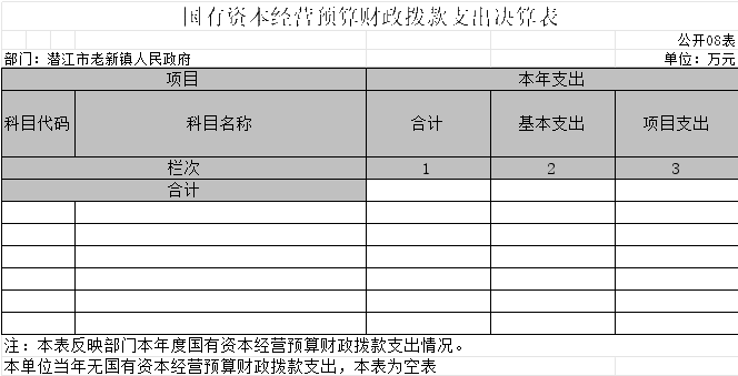 (如果本部门没有使用国有资本经营预算财政拨款安排的支出,则写本单位当年无国有资本经营预算财政拨款支出,同时在公开空白的“2023年度国有资本经营预算财政拨款支出决算表(表8)”下作说明)