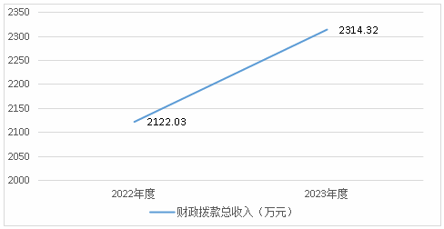 2023年度财政拨款收、支总计均为2314.32万元。与2022年度相比,财政拨款收、支总计各增加192.29万元,增长9%。主要原因是本年度补发两类人员统筹待遇。