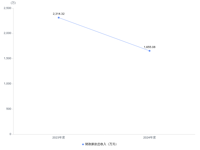 2024年度收入合计1577.65万元,与2023年度相比,收入合计减少238.97万元,下降13.2%。其中:财政拨款收入1314.37万元,占本年收入83.3%;上级补助收入0.00万元,占本年收入0.0%;事业收入0.00万元,占本年收入0.0%;经营收入0.00万元,占本年收入0.0%;附属单位上缴收入0.00万元,占本年收入0.0%;其他收入263.28万元,占本年收入16.7%。