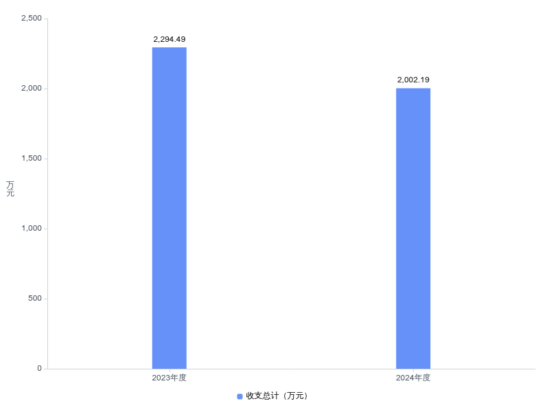 2024年度收、支总计均为2002.19万元。与2023年度相比,收、支总计减少292.30万元,下降12.7%,主要原因是2023年一次性支付2020-2023年度政府退休人员统筹待遇,2023-2024年度新建机关周转房主要支出在2023年度。