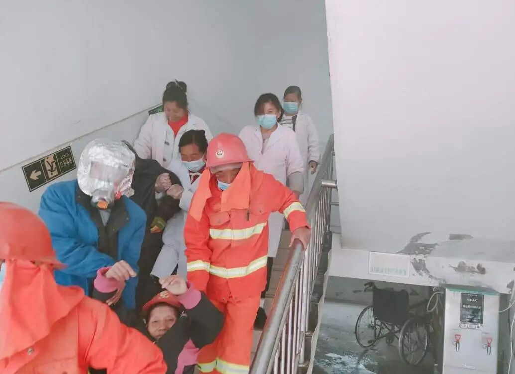 演练模拟福利院二楼电路老化引发火情。警报响起后,工作人员迅速响应:通讯组报警并上报,疏散组引导老人用湿毛巾掩住口鼻、弯腰撤离,救援组用担架转移“行动不便”人员,5分钟内全员安全疏散至指定区域。镇消防专员现场指导灭火器使用、逃生技巧及轮椅救援方法,确保应急措施贴合老人需求。