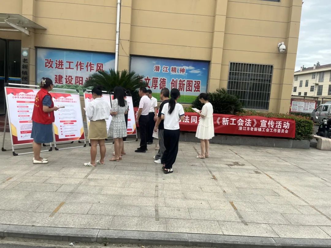 为深入学习宣传新修订的《中华人民共和国工会法》,进一步推动新《工会法》的普及,提高广大职工群众法律法规意识,7月4日下午,老新镇工会在老新镇群众服务大厅门前组织开展了以“情系职工·与法同行”为主题的新《工会法》宣传活动。