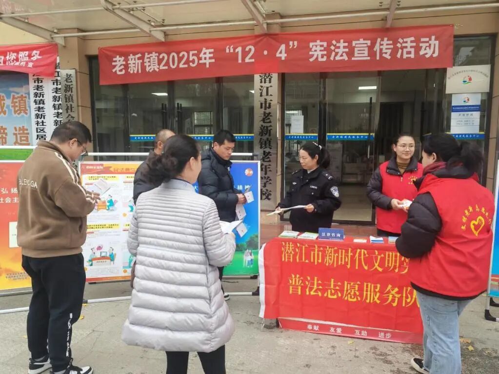 为深入学习宣传习近平法治思想,大力弘扬宪法精神,12月4日,老新镇平安办联合派出所、司法所在老新社区开展“12·4”宪法宣传周普法活动。