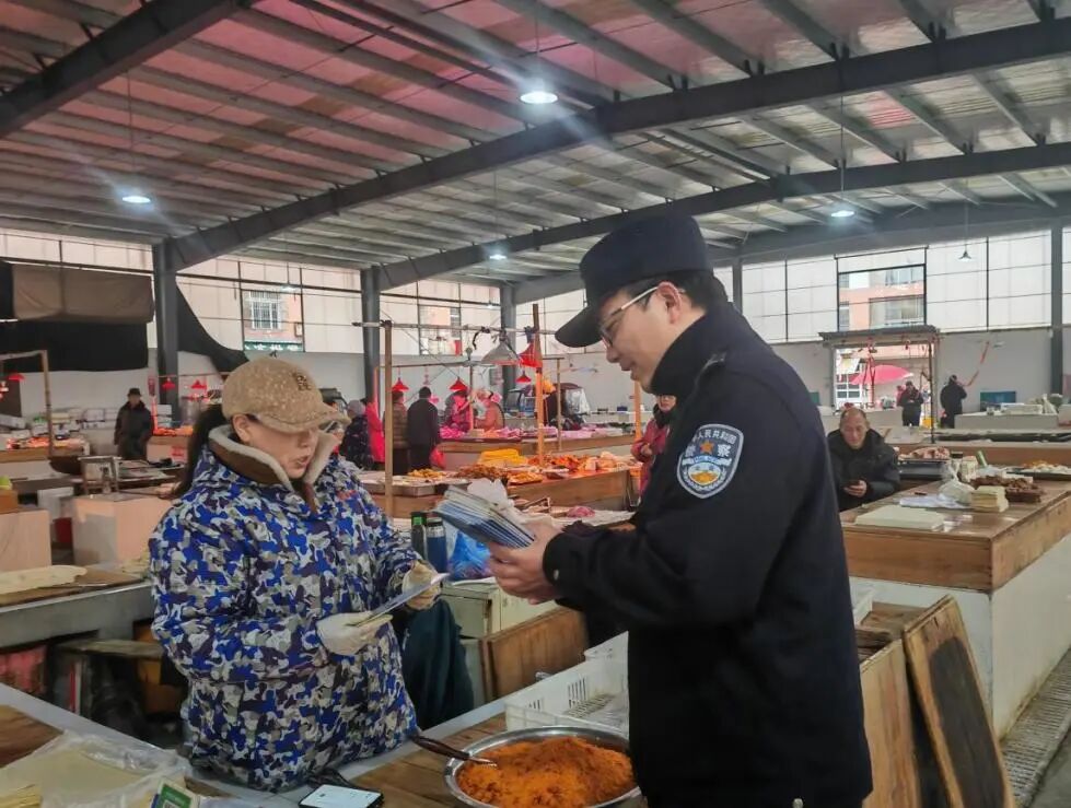 此外,社区民警还来到商超菜场、沿街商铺等人员密集场所开展“送法解难题”活动,通过与商户面对面交流,重点讲解宪法中关于市场经营、财产保护的相关规定,结合商铺经营特点,普及消费者权益纠纷处理等实用的法律知识,提醒经营者防范诈骗等常见风险,为优化法治化营商环境注入法治力量。