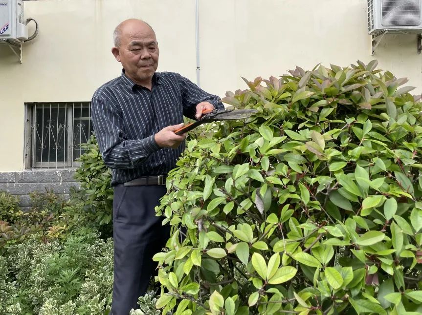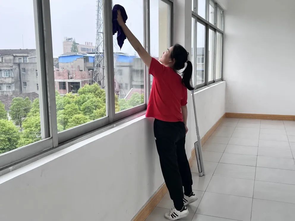 政府后勤人员陈礼洲对院内的花草树木进行了修剪,又对树木进行了灌溉,确保树木生长得到足够的养分。修剪后,院内树木线条变得流畅整齐,使整个政府大院更加绿意盎然。政府办公大楼内,黄仁运认真清洗各办公室窗户内外的陈旧灰尘。