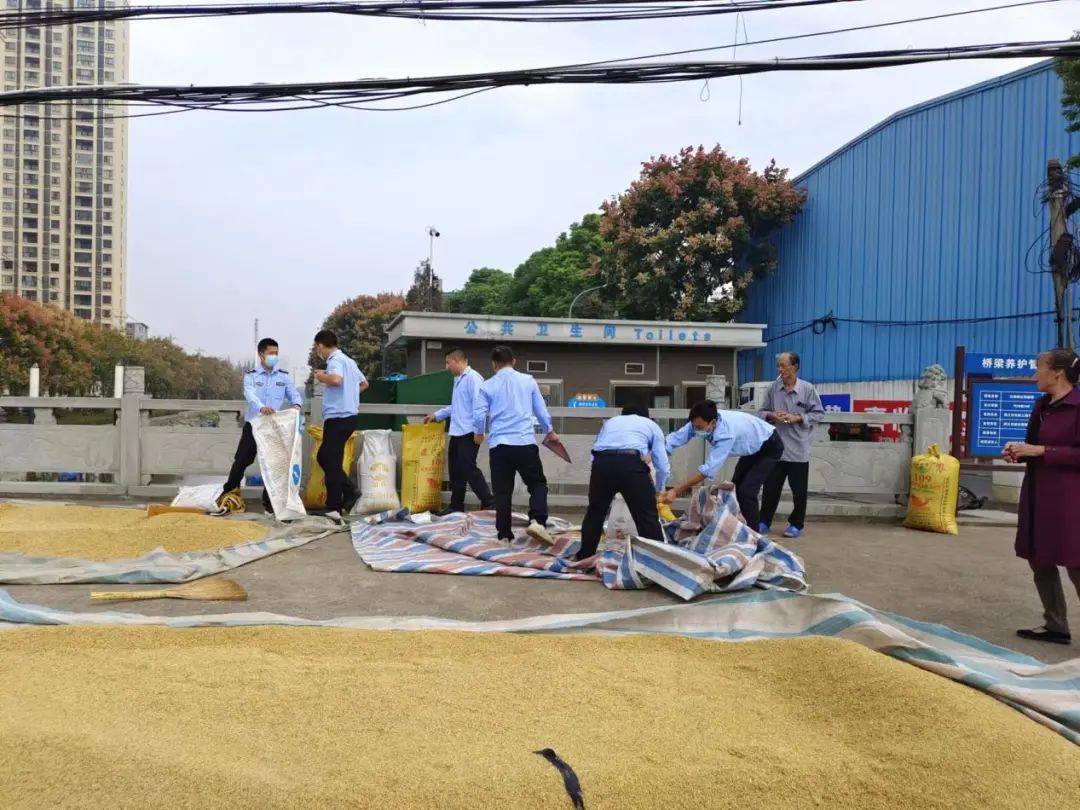 泰丰街道综合执法中心接到市民反馈,红梅路城南河桥上有人占道晾晒稻谷,泰丰街道综合执法中心市容大队第一时间赶赴现场,发现刚收割的稻谷铺满红梅路城南河桥整个北侧桥面,占道面积约110平方米,稻谷约四千余斤,严重影响市容市貌和交通安全,过往的行人不得不与车辆“争道”。