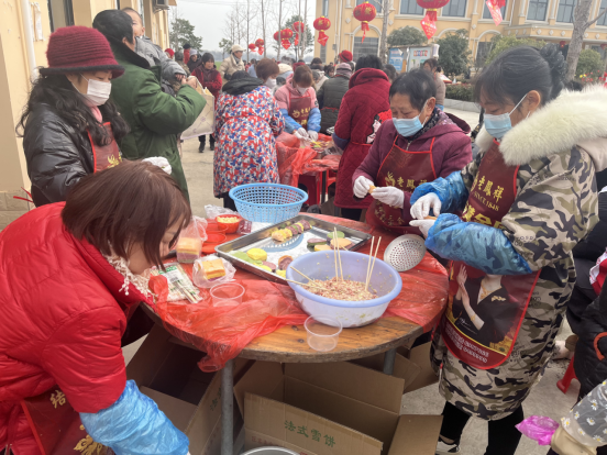 “新鲜蔬菜,没打过农药,放心购买!”“散养土鸡,肉质鲜美!”……乡村集市区,野生甲鱼、散养土鸡、新鲜蔬菜等原生态农副产品现场展销,让群众在家门口置办年货。炸翻饺、炸麻花、包饺子等特色美食纷纷在小吃体验区“登台亮相”,农市大集里人头攒动间升腾起浓浓年味。