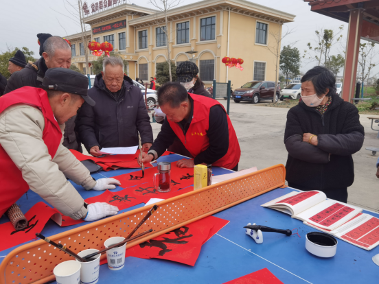 活动现场,市摄影家协会、解放村书法爱好者们忙得热火朝天,为村民写春联、拍合影、送祝福。