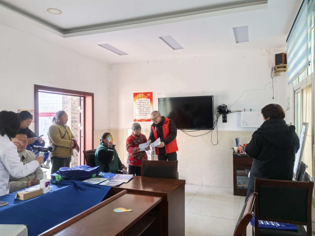 一个冬阳和煦的清晨,葛柘村村委会比往日热闹了许多,身穿白大褂的眼科医生与身着红马甲的驻村工作队成员忙碌其间,为前来检查的中老年村民们引导登记。本次“乡村振兴·光明护航”冬季公益义诊活动由葛柘村、市农业农村局驻村工作队、潜江爱尔眼科医院共同组织,将专业的眼健康服务送到群众家门口。