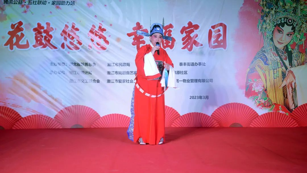 3月25日,由“腾讯公益·五社联动·家园助力站”泰丰项目主办,潜江市戏剧曲艺家协会、泰丰街道办事处戏迷票社承办的“花鼓悠悠·幸福家园”戏迷会在泰丰街道棉原社区都市华府小区前举行,近400名市民兴致勃勃观看了演出。