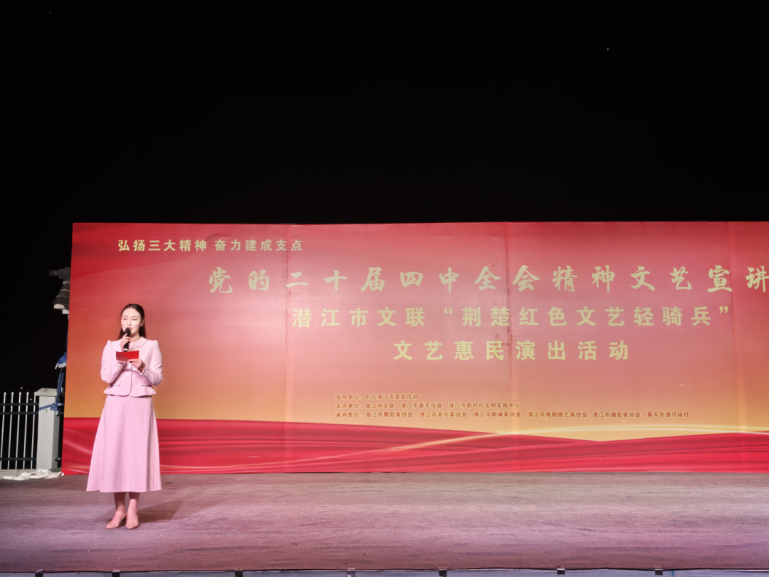 为有效推动党的二十届四中全会精神在基层“生根开花”,10月28日晚,党的二十届四中全会精神文艺宣讲暨市文联“荆楚红色文艺轻骑兵”活动走进泰丰街道洪庙村,通过“文艺汇演+理论宣讲”的形式,将丰富的“精神大餐”送至群众家门口。