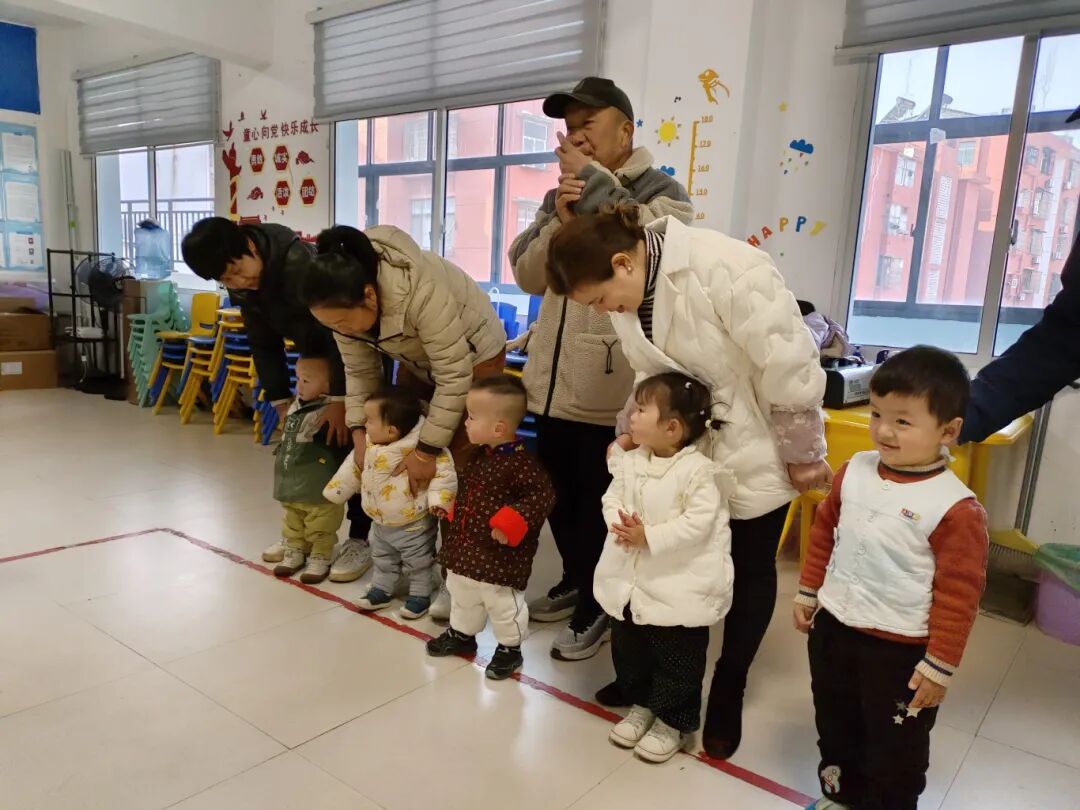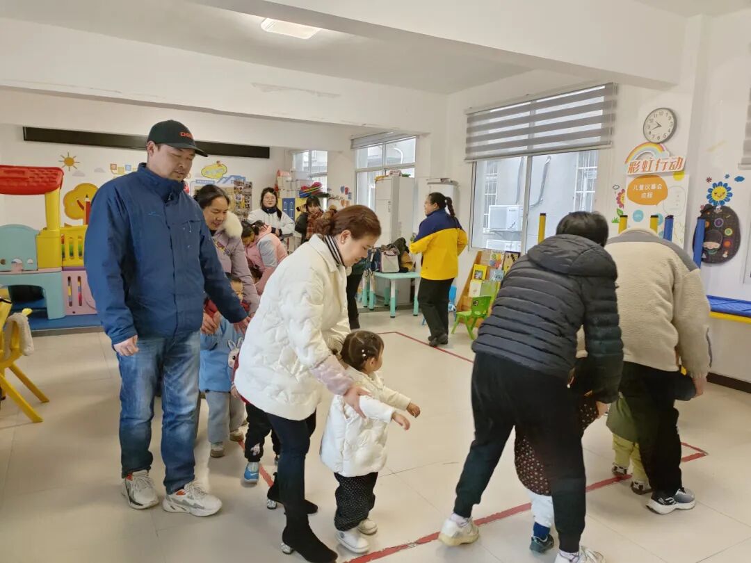 活动伊始,播放《幸福拍手歌》,老师带领家长和幼儿进行拍手、跺脚、拍肩等动作。幼儿反应热烈,能迅速跟上节奏,现场气氛迅速活跃,为后续活动打下良好基础。播放《新年好》音乐,志愿者老师讲关于新年的故事,引导孩子们和家长一起模仿志愿者的动作。孩子们充分发挥想象力,创造出了各种各样可爱的动作,在这个过程中,家长们也积极参与,与孩子们亲密互动,共同沉浸在这个美好的场景中,增强了亲子间的情感体验。
