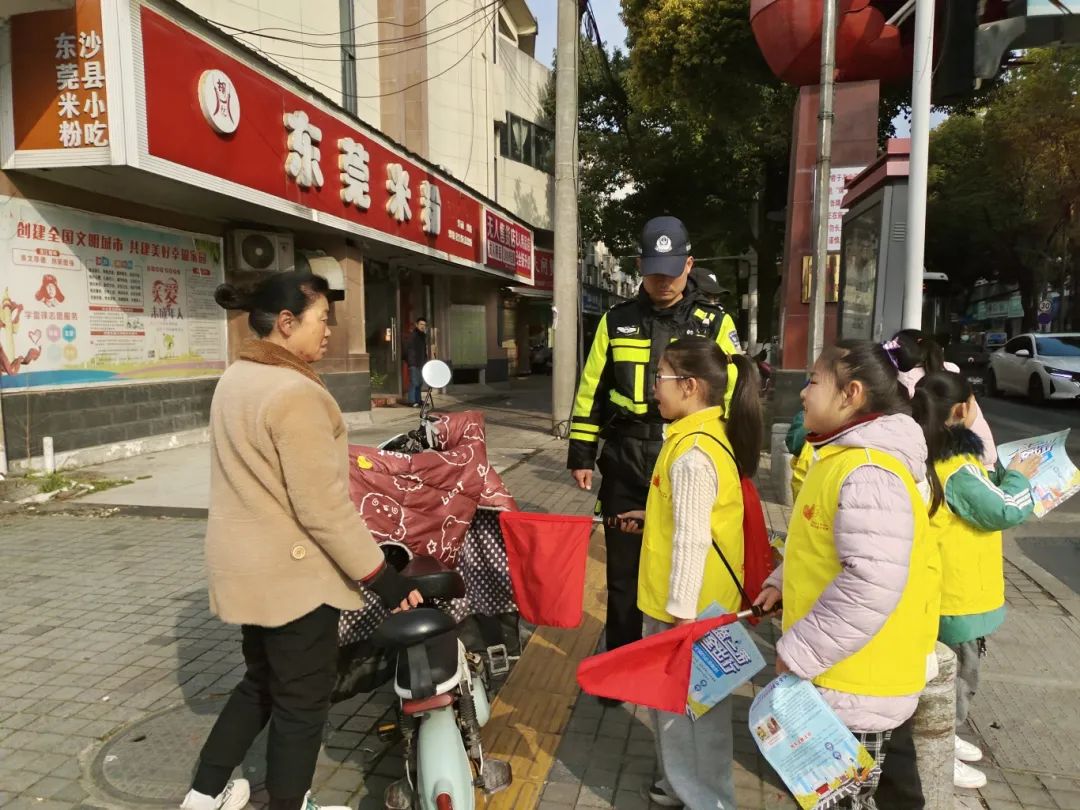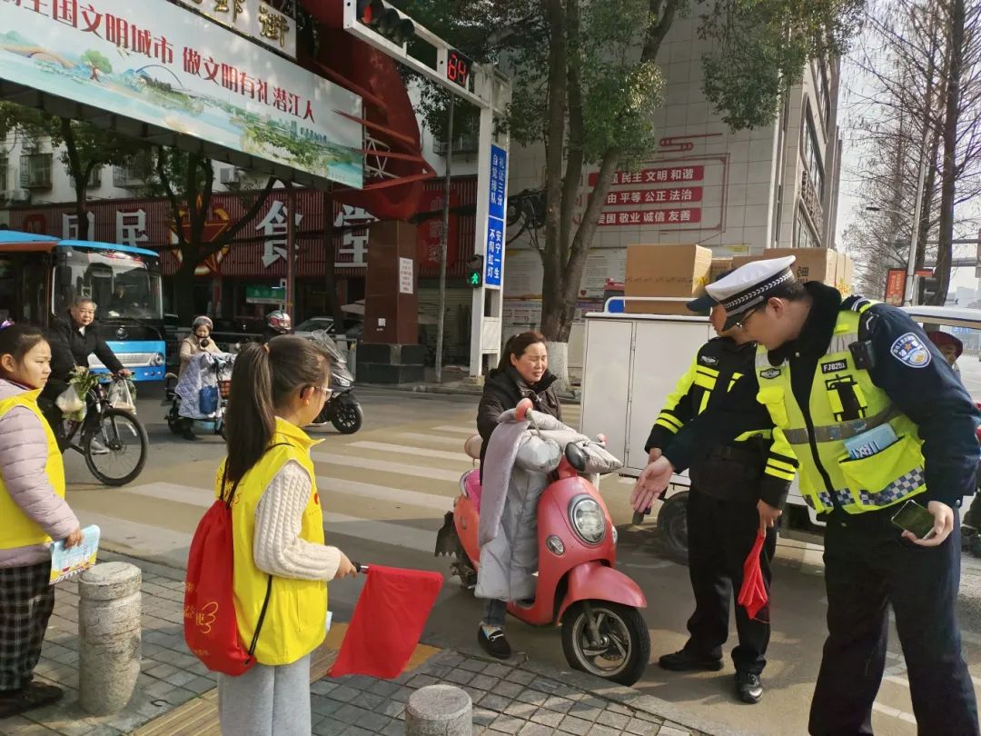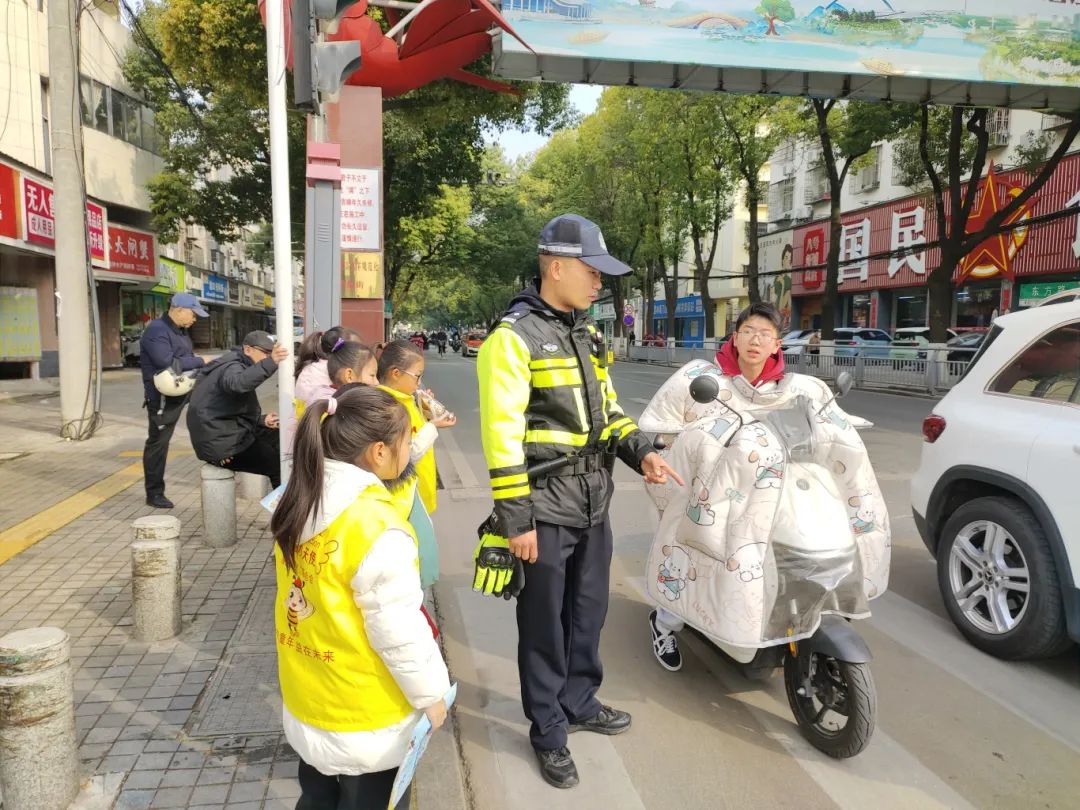 在交警的监护下,选择安全的交通路口,让孩子们与家长一起进行实地劝导。孩子们主要负责劝导行人遵守交通规则,如不乱穿马路、不闯红灯,不戴头盔、逆行等。