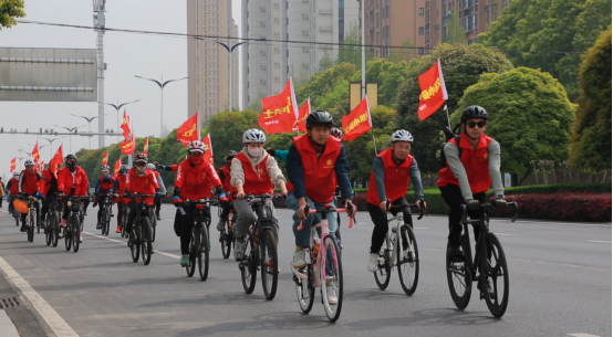 上午8点30分,参加骑行活动的志愿者们列队整齐,随着一句活力满满的“文明创建 你我同行”口号,30名文明小骑士身穿志愿服务红马甲,携带宣传旗帜和宣传小喇叭,有序地驶出。
