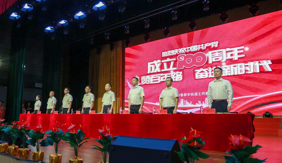 在全党上下深入开展党史学习教育之际,泰丰街道办事处于6月28日上午,在德风学校蒲公英剧场召开庆祝中国共产党成立100周年表彰大会暨文艺汇演。