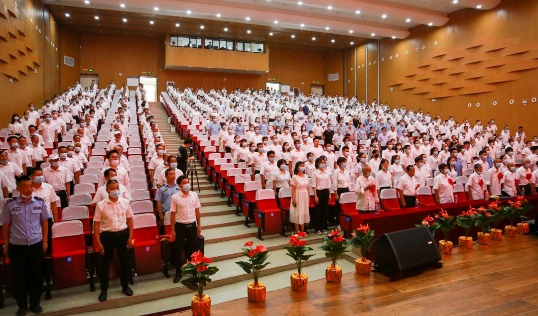 大会在庄严的国歌声中拉开序幕,500余名参会人员站姿挺拔、歌声高亢,唱出了对党和祖国的祝福,也再一次激发了全体党员干部心中浓厚的爱党爱国情怀。