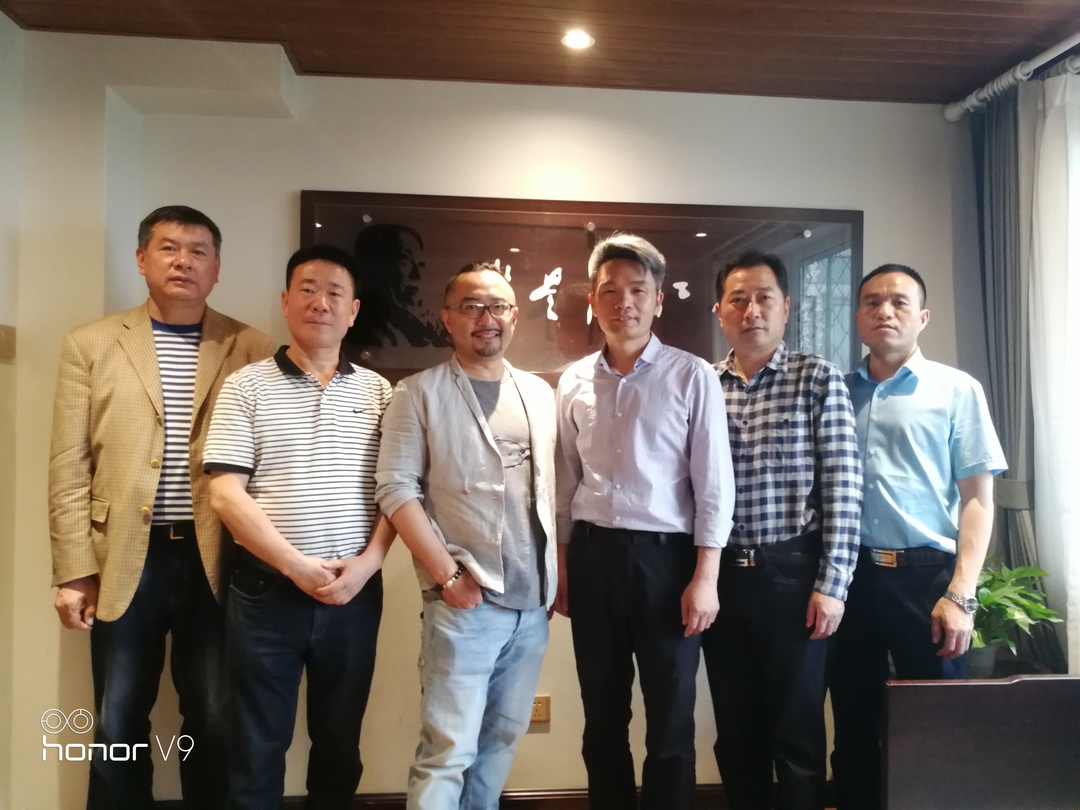 2019年5月13日教育局陈华局长率团赴京请示“泰丰小学”更名为“曹禺小学”事宜与曹禺先生外孙苏蓬合影留念