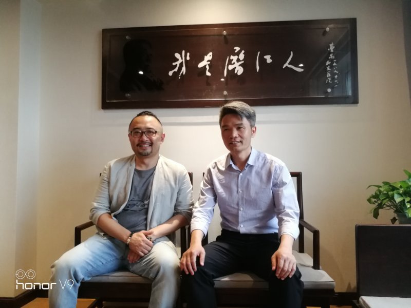 教育局陈华局长同戏剧文学大师曹禺的外孙苏蓬先生合影留念