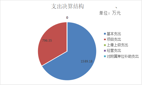 2023年度支出合计2385.54万元,与2022年度相比,支出合计减少267.57万元,降低10.1%。其中:基本支出1589.18万元,占本年支出66.6%;项目支出796.35万元,占本年支出33.4%;上缴上级支出0.00万元,占本年支出0.0%;经营支出0.00万元,占本年支出0.0%;对附属单位补助支出0.00万元,占本年支出0.0%。