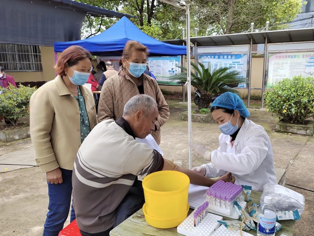 人间四月,春光正盛。提前得知镇卫生院要下乡开展义诊活动的居民朋友们,一大早就到村卫生室门前排起了长队。活动现场,工作人员一边维护现场秩序,一边给群众发放身体健康情况登记表、爱国卫生运动宣传手册,确保义诊活动有序进行;医护人员免费为群众测血压、量血糖,耐心解答每一位问诊居民的健康问题,详细讲解群众关心的疾病预防、健康生活相关知识,并提供细致和专业的健康咨询服务。