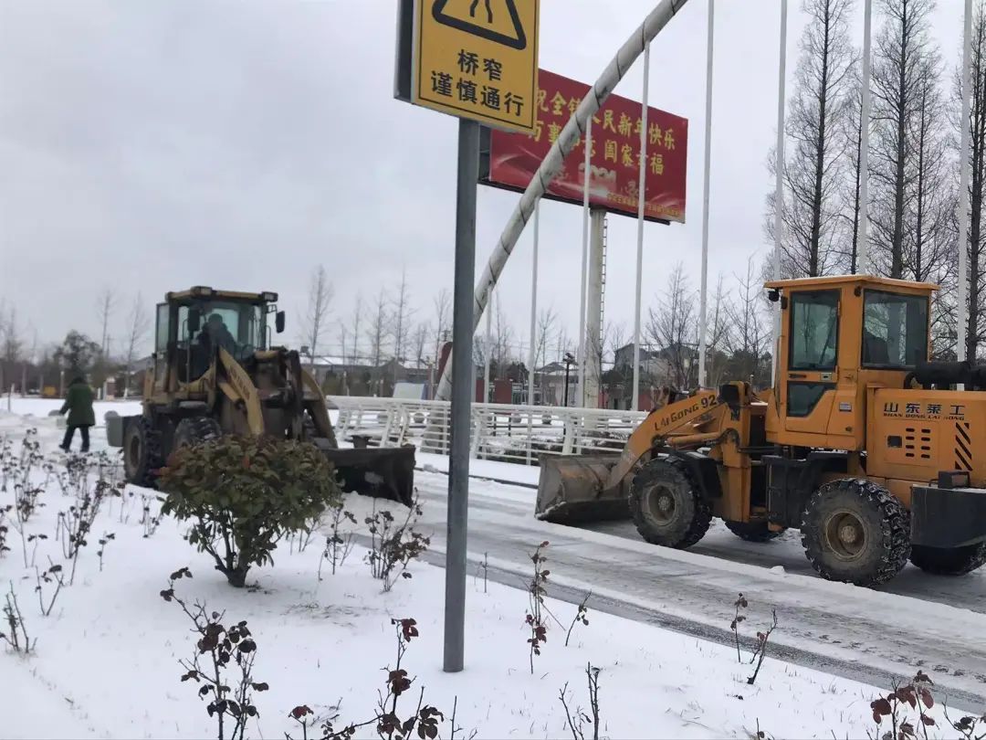 王场镇城建服务中心以雪为令,迅速组织人力物力及铲车等清雪设备上路进行清雪,一线环卫工人利用雪滚、雪铲等大型清雪设备,采取昼夜不间断、歇人不歇机械的方式,全天候循环清雪作业,最大限度清除路面积雪,全体城建服务中心工作人员用实际行动践行了“雪中路通、雪停路畅”的诺言。