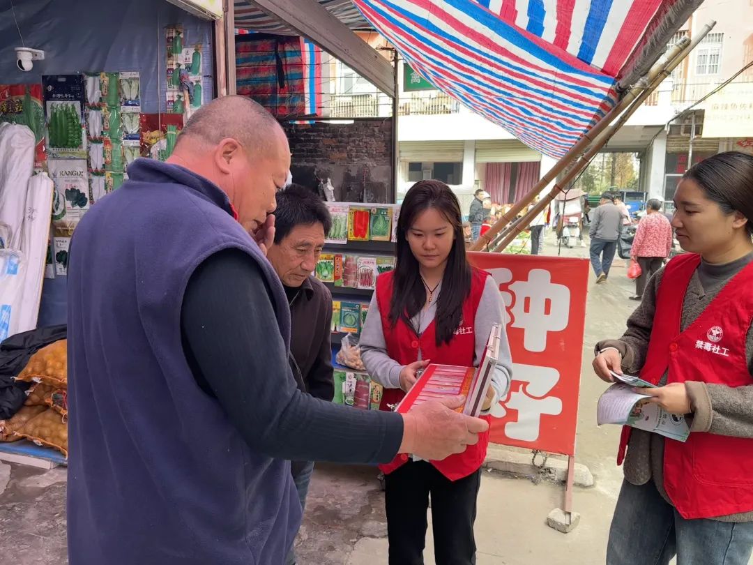 为了进一步加大禁毒宣传教育力度,引导辖区群众自觉抵制毒品侵害,提高辖区群众识毒、拒毒、防毒能力,激发群众参与禁毒宣传热情。近日,王场镇社工站的禁毒社工们抢抓群众出行采购物资的早高峰,在人流量较大的集贸市场开展了一场禁毒宣传活动。