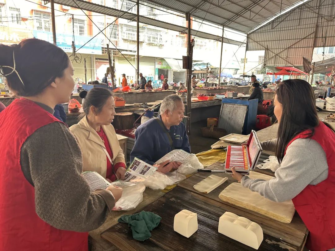 随后,禁毒社工通过向商户、菜市场商贩发放禁毒宣传手册,仔细为大家宣讲了新型毒品的种类、新型毒品和传统毒品的区别、吸食毒品的危害。同时倡导市场从业人员不仅要增强禁毒法律意识,自觉抵制毒品,还要积极宣传禁毒知识,共同携手禁毒反毒。