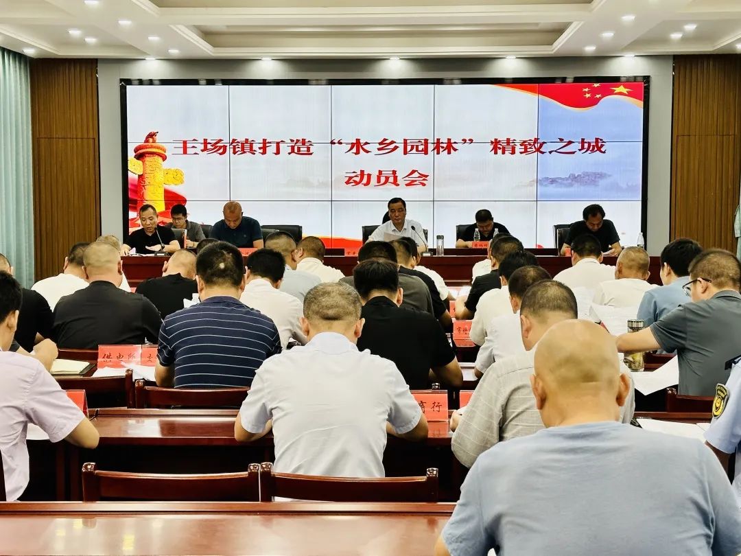 8月22日,王场镇召开打造“水乡园林”精致之城动员大会,镇全体班子成员、机关干部、各村(社区)党支部书记、镇直单位主要负责人、园区企业主要负责人参加会议。