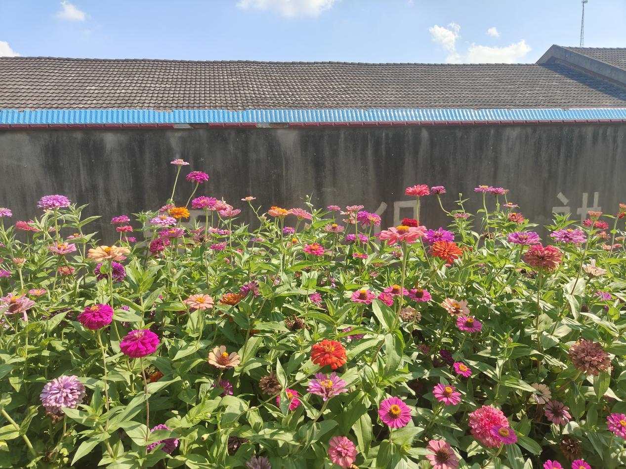 近日,熊口管理区荻湖办事处办公地院墙周边大变样,杂草丛生的荒地摇身一变,成为吸引众人目光的美丽花道。