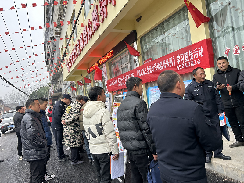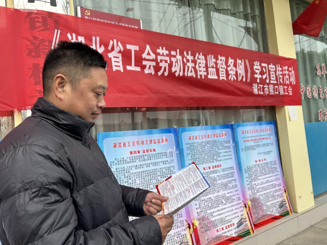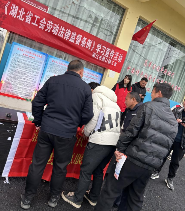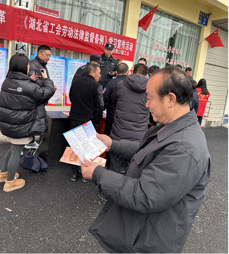 熊口镇工会联合镇政法办、司法所、禁毒社区在镇沿河社区开展《湖北省工会劳动法律监督条例》宣传活动,现场通过摆放展板、发放宣传资料、现场答疑等方式,宣传和解读《湖北省工会劳动法律监督条例》等相关法律法规知识,鼓励企业职工主动学习《条例》,增强自我保护意识,积极参与和谐劳动关系的构建。在互动问答环节,职工们纷纷就关心的劳动权益问题提出疑问,工作人员耐心解答,赢得了在场职工的阵阵掌声。