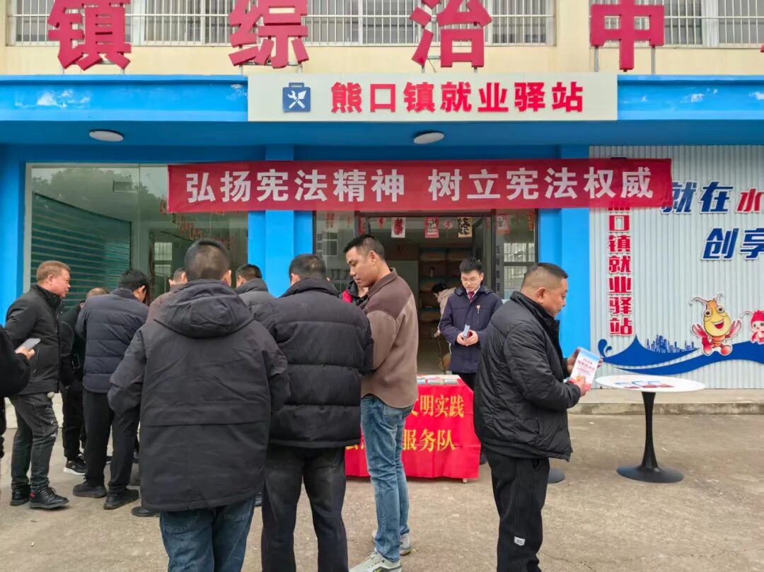 12月4日上午,熊口镇政府组织熊口镇水陆派出所、司法所、熊口法庭共同开展2025年“12·4”国家宪法日集中宣传活动,镇政府平安办工作人员、各村居治调主任、律师志愿者、普法志愿者及群众代表等100余人参加本次活动。