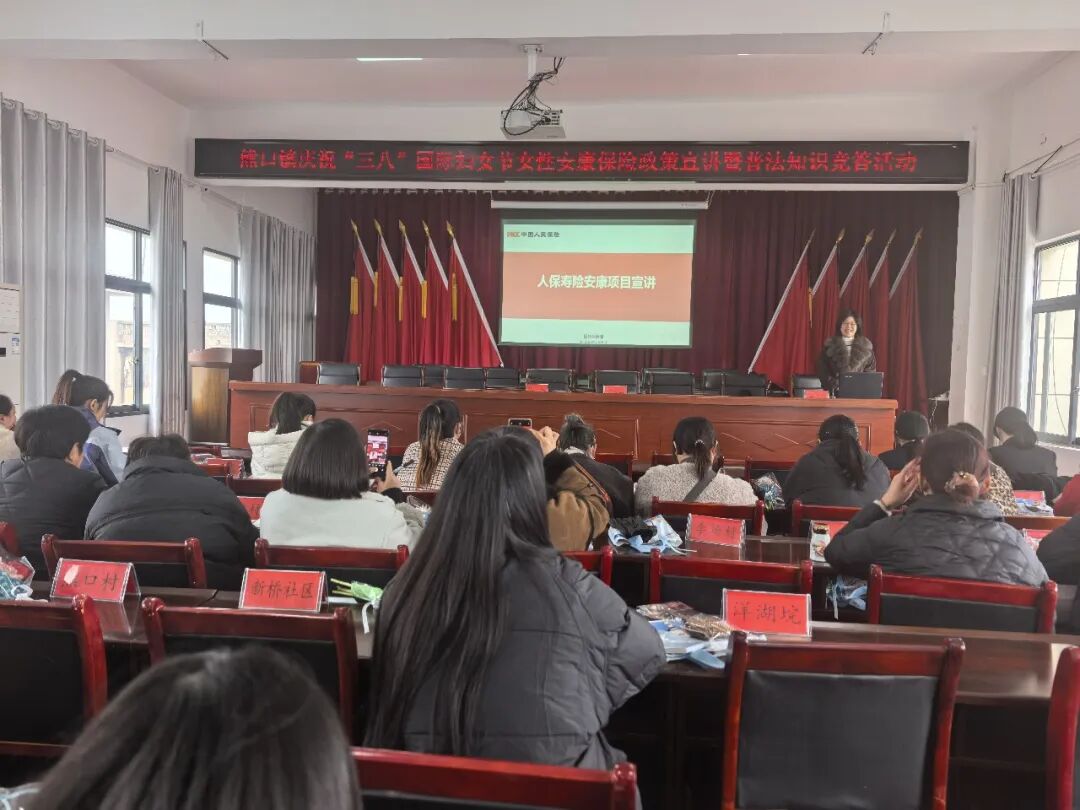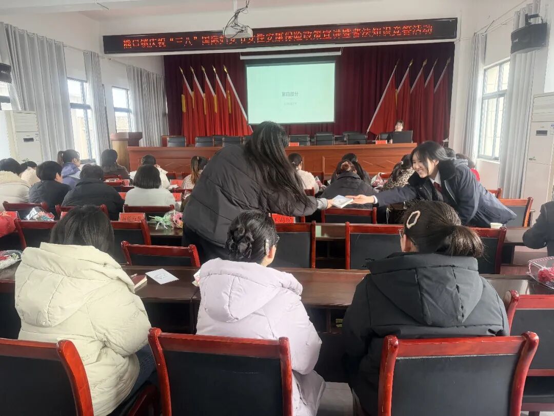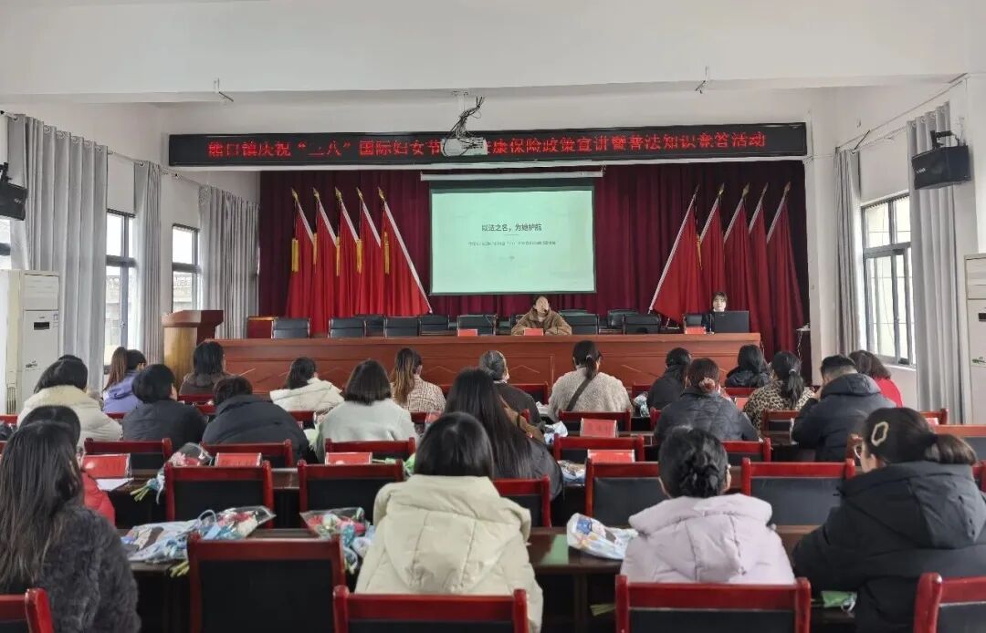 春风和煦,巾帼如歌。在第116个“三八”国际妇女节来临之际,熊口镇举办女性安康保险政策宣讲暨普法知识竞答活动。镇机关女干部、各村妇女主任、企业女代表等参加活动,共学法律知识、共话健康保障,共度温馨有意义的节日。