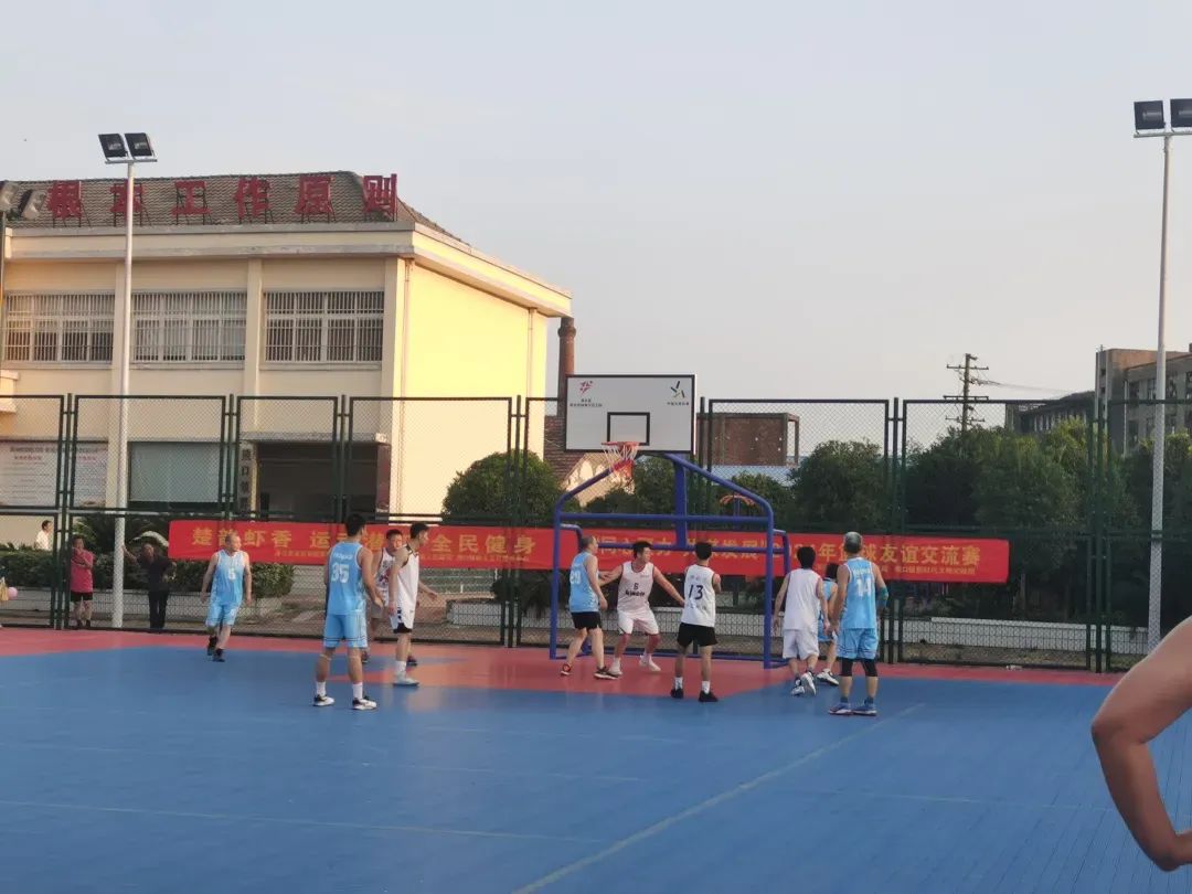 炎炎夏日,一场家门口的篮球联谊赛在熊口镇文体广场火热“开战”,来自市市场监督管理局和熊口镇的篮球队员们个个精神抖擞、斗志昂扬地走进球场,紧张地为比赛做好热身准备。赛场外看台上,上百名群众自发前来现场观战,为球员们加油助威,场内外激情澎湃。