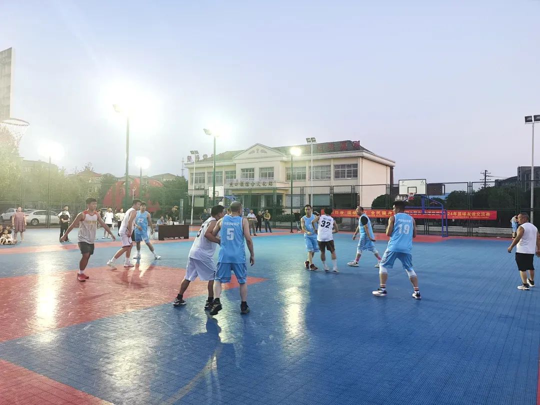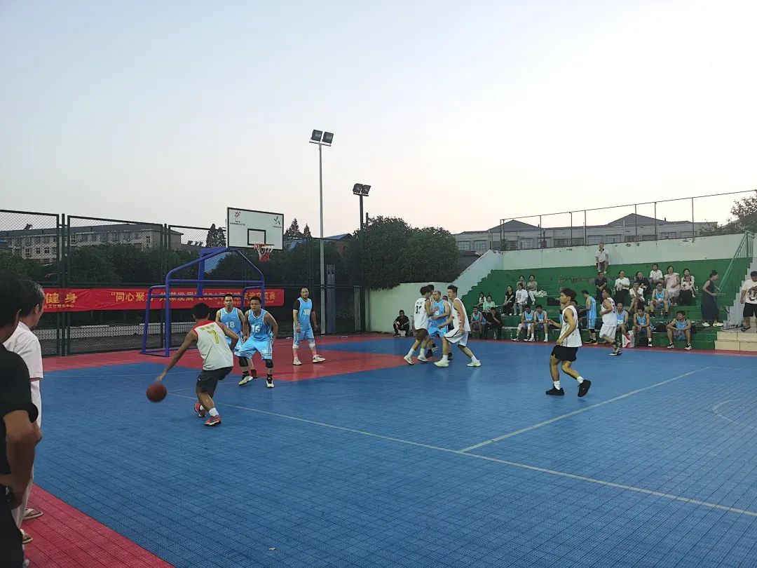 当晚六点半,随着开哨声响起,比赛正式开始,一开场双方就展开激烈拼抢,赛场上球员们奋力奔跑、挥汗如雨,“漂亮、进了、3分球、厉害。”赛场上的每一个进球都引来场边观众的阵阵欢呼。球员们你追我赶,比分胶着,整场比赛精彩不断。