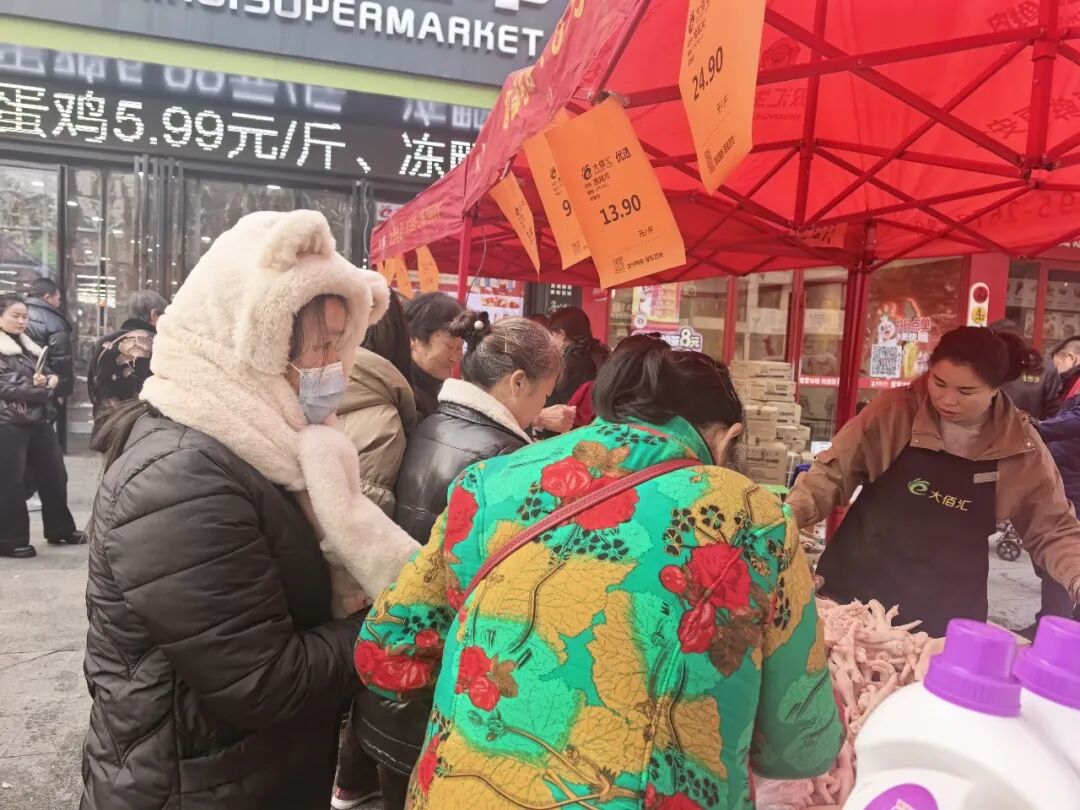 “乡味聚福·年货狂欢”暨第二届乡村旅游美食购物年货节活动现场,熊口镇商超联合辖区商户们准备了丰富多样的年货,吸引了群众纷纷前来赶集采购、精心挑选各式各样的年货商品,现场人头攒动、喜气洋洋,一派热闹景象。本次年货节齐备糖酒食品、农副特产、副食生鲜、年庆用品,居民们满载而归,脸上洋溢着幸福的笑容,为即将到来的春节增添了满满的期待与欢乐。