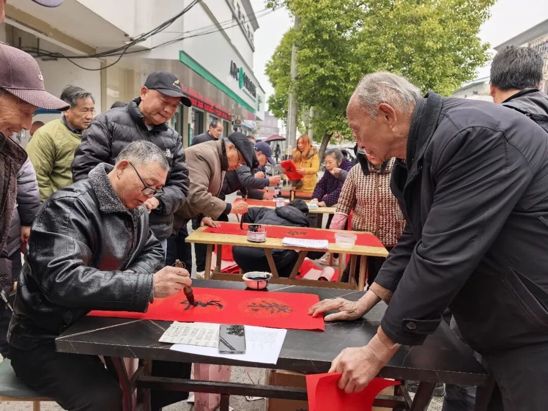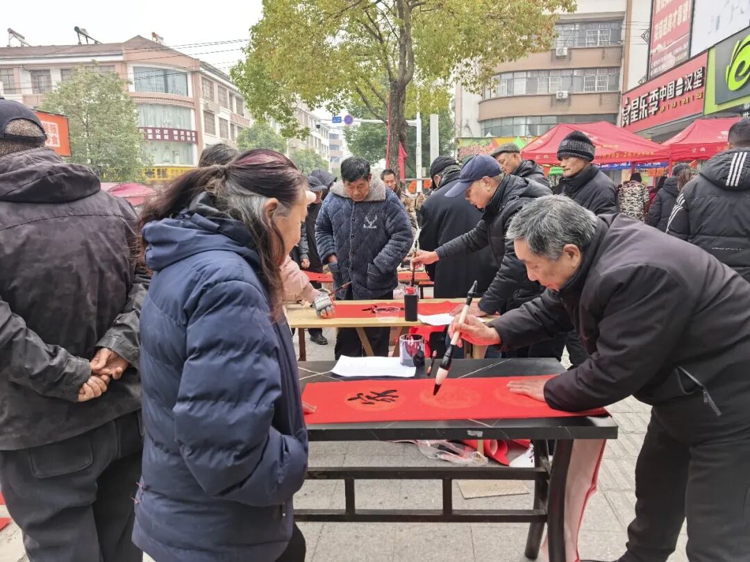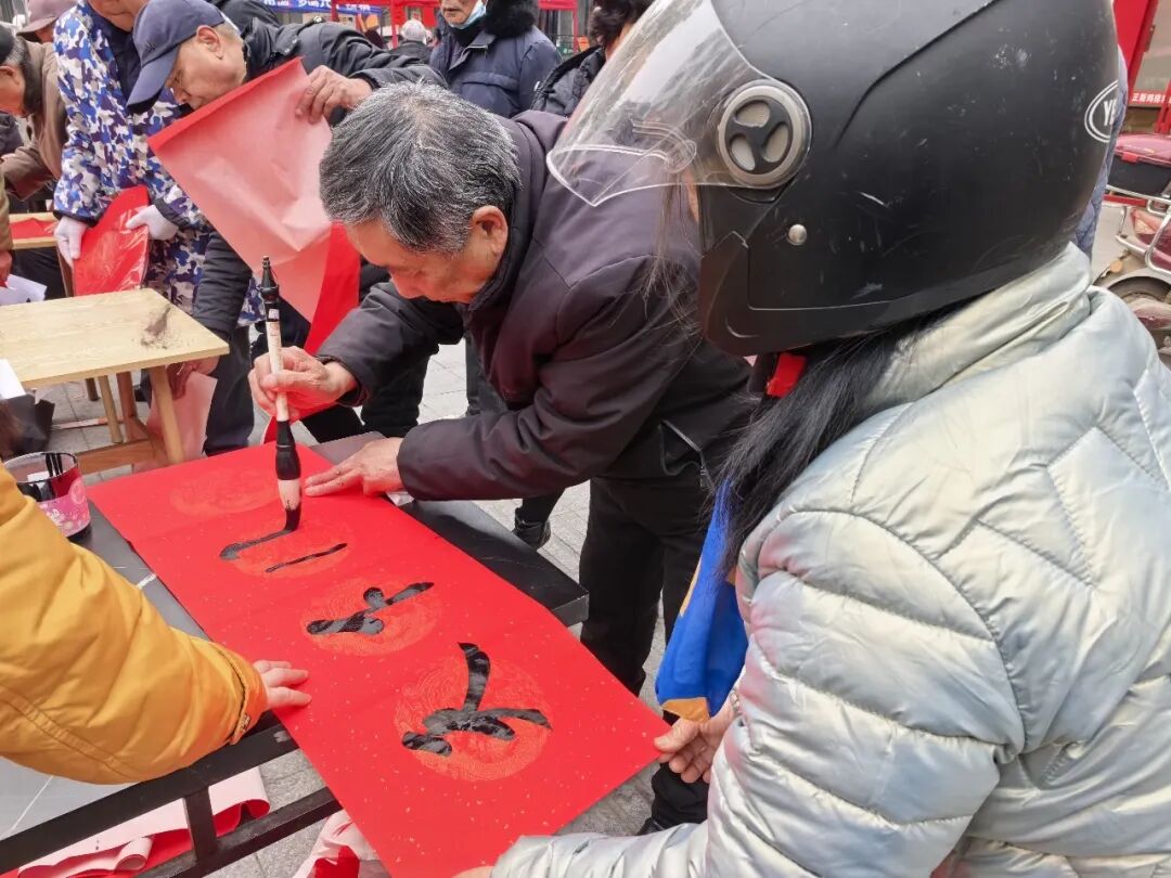 在沿河社区,熊口镇新时代文明实践所、熊口镇诗词楹联学会共同举办的“廉洁春联进万家 风清气正迎新年”送春联活动现场,依次排开的书桌上,老师们摊开红纸、挽袖执笔、挥毫泼墨。在浓郁的墨香中,一幅幅书写工整、迎新纳福的火红春联书写着吉祥如意,寄托着对幸福的向往。许多群众围绕着春联展区,精心地挑选着心仪春联,等待着这份新年的祝福,“春联,是过年必备的文化年货呀,贴上春联的祝福,这才是红红火火的新年嘛。”