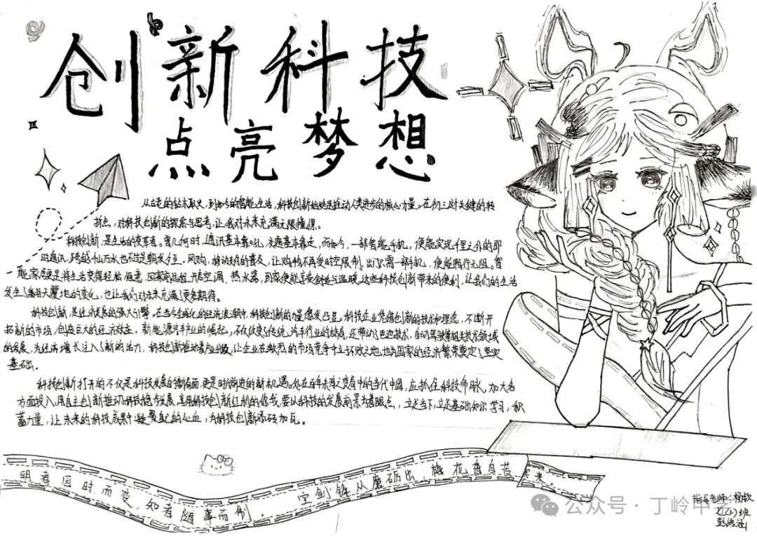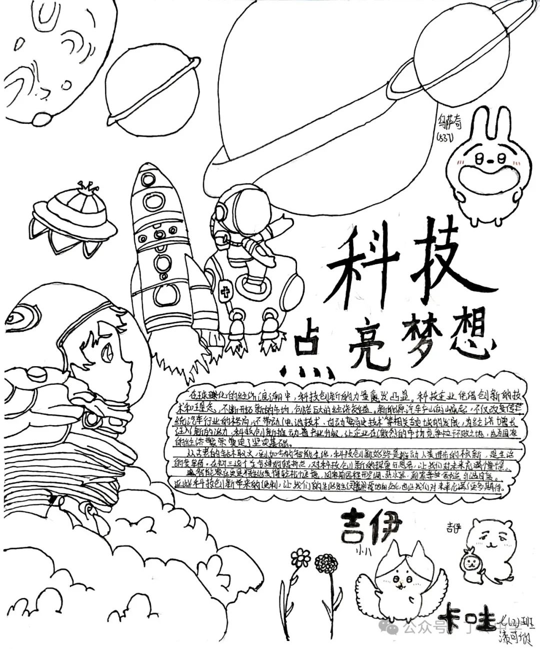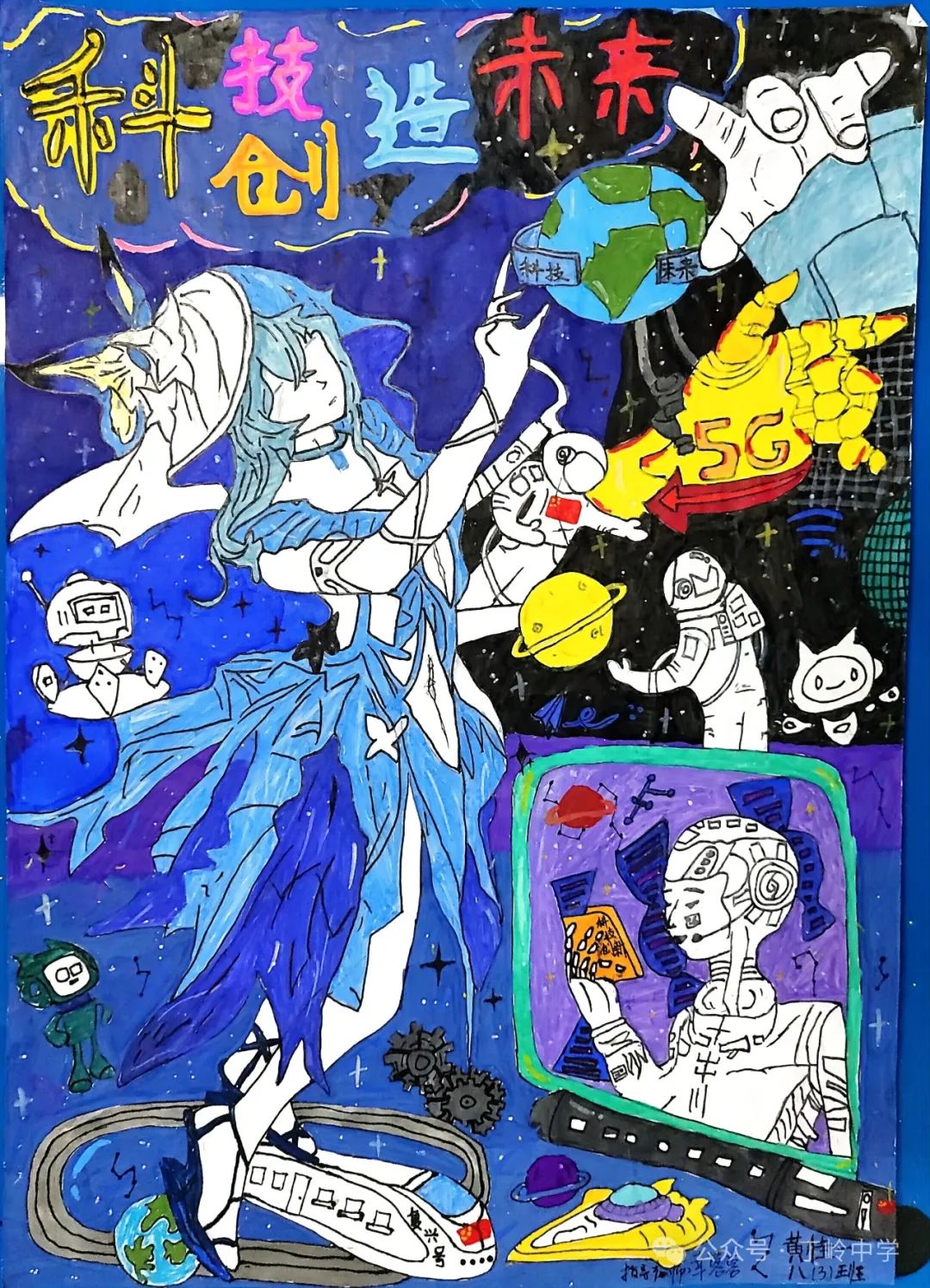 在科技飞速发展的时代,想象力如同璀璨星河中的桥梁,将现实的土地与未来的星空紧密相连。为点燃同学们心中的创新火种,培育敢于探索的科学精神,丁岭中学隆重举办“创新引领未来 科技点亮梦想”为主题的科技节科幻画比赛。