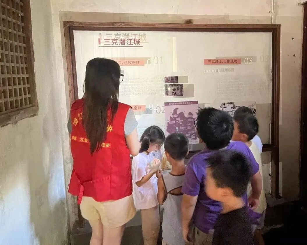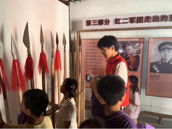 “老师,贺龙是谁啊”,在爱国主义教育基地,孩子一边看着现场的老照片,一边兴趣盎然地问,“贺龙是我们红军当时的将领,也是我们新中国开国十大元帅之一,曾经在熊口领导着我们红二军团的革命斗争……”。对于孩子们的询问,大学生志愿者进行了详尽的讲解,让孩子们回顾了革命先烈浴血奋战的光辉事迹,更加珍惜来之不易的幸福生活。