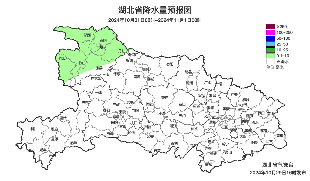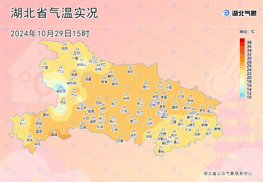 31日08时-11月1日08时,鄂西北多云到阴天有小雨;其他地区晴天间多云。最高气温鄂西北17~21℃、其他地区21~25℃,最低气温11~14℃,偏北风3到4级、阵风5到6级。