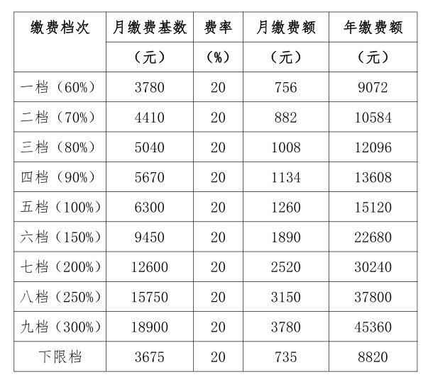 三、2023社保年度(2023年7月1日至2024年6月30日)我市灵活就业人员缴费档次划分如下: