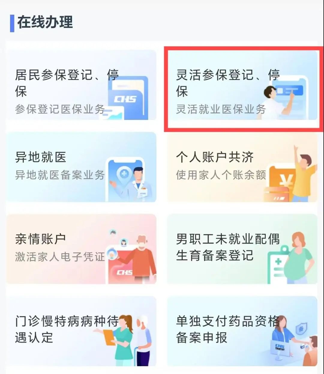 ③进入办理界面后,点击【灵活就业人员暂停参保】。