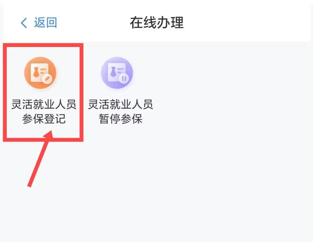②小程序首页,找到【在线办理】点击【灵活参保登记、停保】。