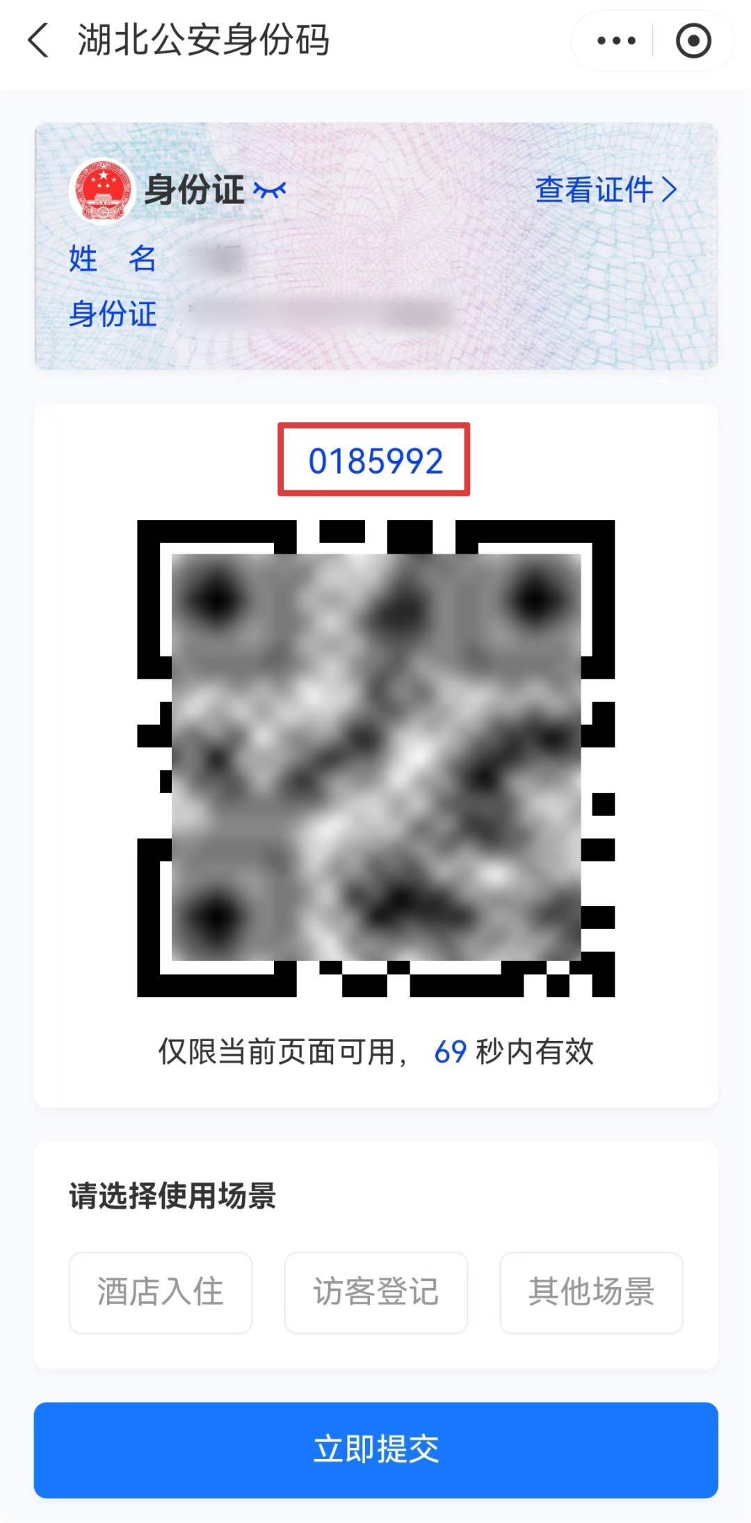 小技巧:您也可以在支持此功能的旅馆、民宿等地,扫描“身份码”物料二维码,或者使用碰一下,进入身份码功能。(物料图片示例如下)