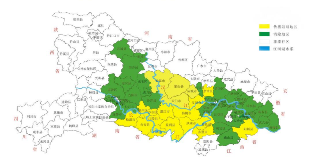 我省13个地市的63个县(市、区)流行血吸虫病,主要涉及长江、沮漳河、汉北河、东荆河、府河、富水等水系。