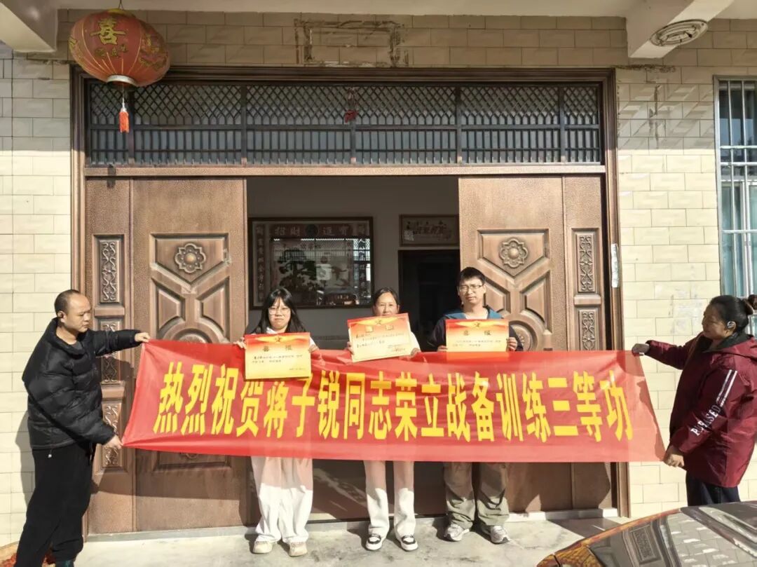镇、村两级报喜团一同来到李伟豪、蒋子锐、徐晓晴同志的家中。据悉,蒋子锐同志在部队战备训练中表现突出,荣立三等功一次,并因表现优异,先后两次被评为“四有”优秀士兵;李伟豪同志和徐晓晴同志也因年度工作出色,各自荣获“四有”优秀士兵称号。