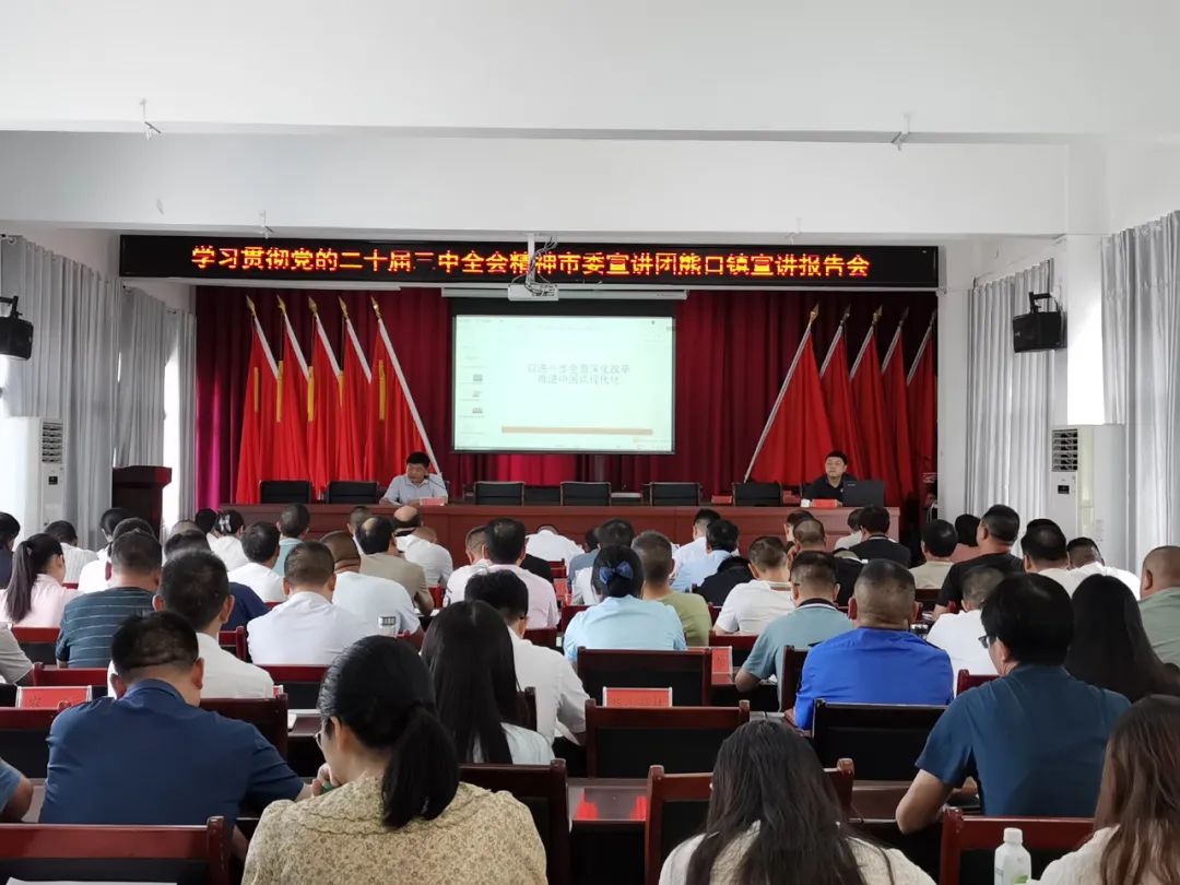 市人大常委会党组书记、主任金茂清、市人大常委会秘书长舒中雄、市人大常委会研究室主任彭迪、熊口镇全体班子成员、全体机关干部、各村(社区)支部书记,镇直单位负责人80余人参加报告会。