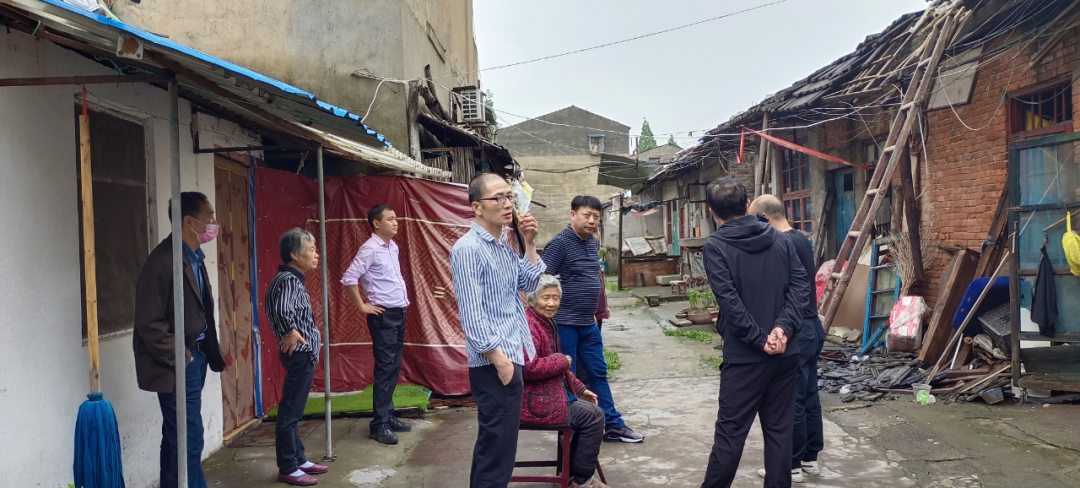 江夏社区居委会主任王荣刚带领社区工作人员冒着大雨进行走访,要求做到“不漏户,不漏房”,逐一排查各片隐患区域。次日一大早社区工作人员对暴雨过后的危漏房屋进行走访查看,对部分危旧房屋的老化线路进行检查,发现问题及时安排专业人员上门处理,并积极联系危房内独居老人的子女将老人接到身边共同生活。