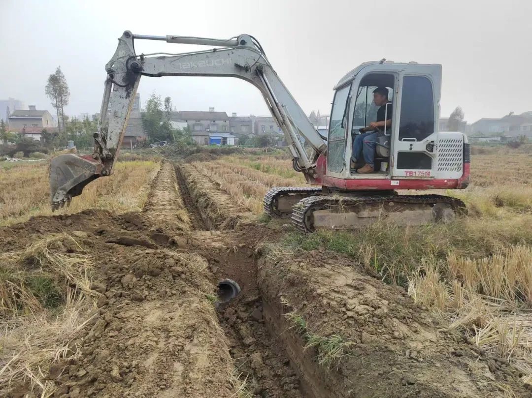 施工现场,挖掘机有条不紊清理沟渠中的淤泥,对沟渠及两侧的杂草进行集中清理,形成“沟相连、渠相通、涝能排”的水系格局。同时,通过一系列举措对排渠进行了加固处理,增强了排渠的防洪抗灾能力。本次共疏挖沟渠600余米,铺设涵管7处9根,清理农田淤泥1200余方,受益农田约60亩。水渠通畅了,解决居民排水灌溉难题,也防止了因灌溉水源短缺导致抛荒撂荒问题的发生,居民农业生产的积极性也更高了。