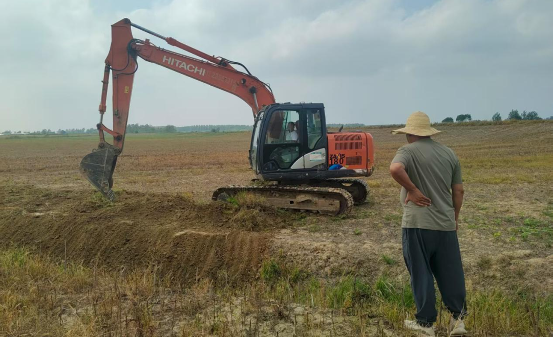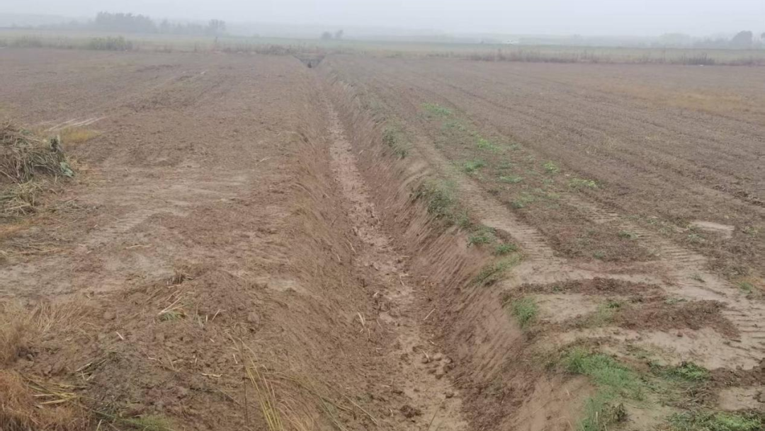 与此同时,农田另一端,挖掘机轰鸣作业,多年淤塞的灌溉渠疏挖工程也在同步推进。此次共计疏浚沟渠15条、总长超5000米,实现外滩农田灌溉区全覆盖,为秋冬播种筑牢“水脉保障”。
