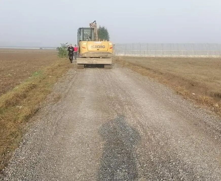 “其他路段以粮食作物为主,农机通行需求没那么高,碎石铺设更经济实用。”
